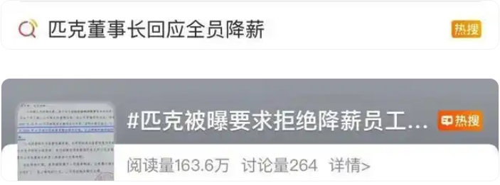 据新黄河9月17日报道,针对此次降薪事件,匹克董事长许景南回应称,降薪员工占比不到百分之十。