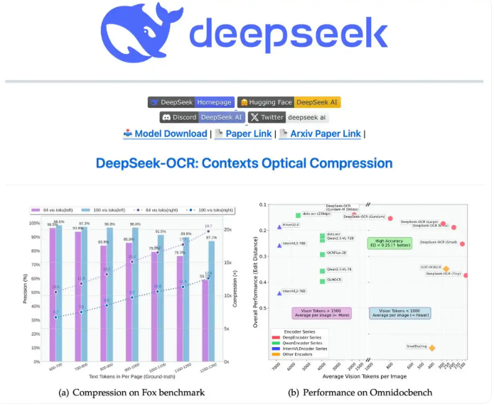 浏览量: 126 DeepSeek又发新模型了,这次是一个OCR 模型。10月20日,DeepSeek在Github开源了这一新模型,并发布《DeepSeek-OCR:Contexts Optical Compression》(《DeepSeek OCR:上下文光学压缩》)论文,解释了这一成果。