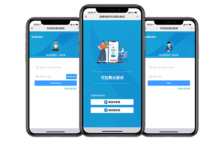 可拉熊云面试提供面试人员的面试登记、面试测评及面试结果查看,面试端提供查看面试人员简历和测评结果查看,面试官通过手机端及时反馈面试情况。