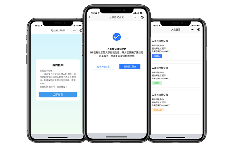 员工通过“可拉熊入职邦”可进行扫码办理入职、签字确认入职信息和后续的档案维护功能,大大提升员工及hr的档案信息维护效率。