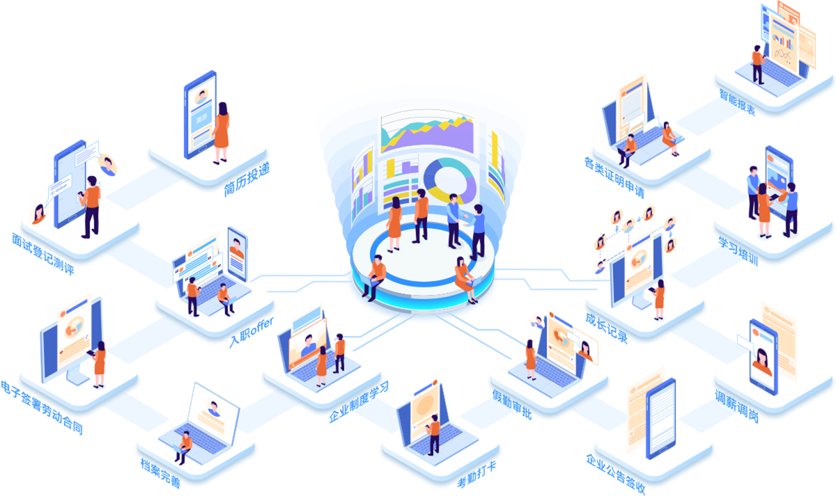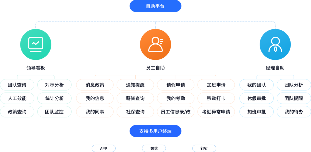 支持多用户终端,通过自助平台满足员工、直线经理和领导的日常工作和管理场景需要
