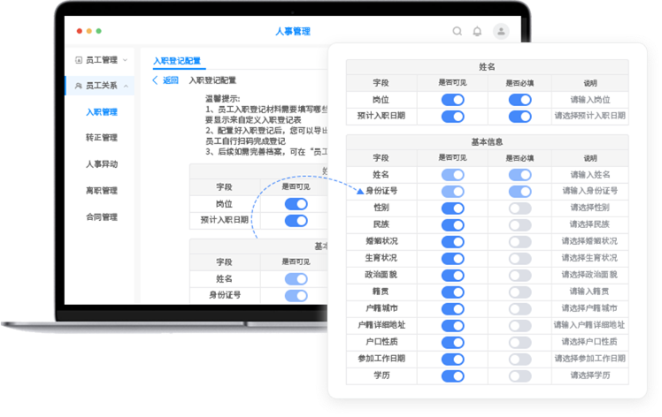 新员工入职当天,大量时间耗费在各种繁缛的资料填写中,信息多且重复率高,部分资料在应聘时已填写,入职登记又要重新填写一遍,费时耗力,新员工入职体验感相对较差。
