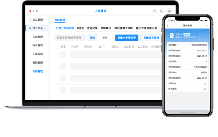传统纸质版本劳动合同、保密协议签订管理工作量大,打印成本、集团管理邮寄成本都比较高。而且管理过程中容易出现合同丢失和篡改,后续续约也存在遗漏的劳动风险。