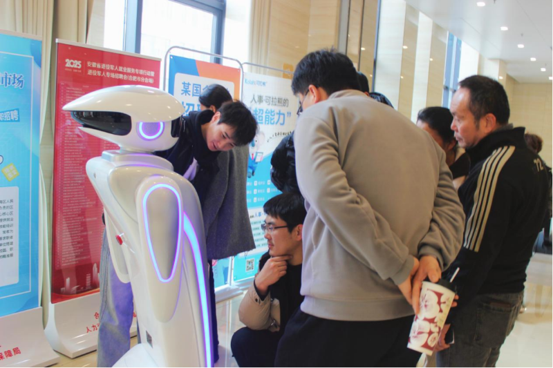 与传统招聘会不同,本次活动的“智能范”成为了全场焦点。现场设置的AI职业指导机器人一亮相,便吸引了众多求职者驻足体验。该机器人能够通过实时人机交互,快速采集求职者的学历背景、技能特长及就业意愿,通过后台大数据算法为其精准筛选适配岗位。