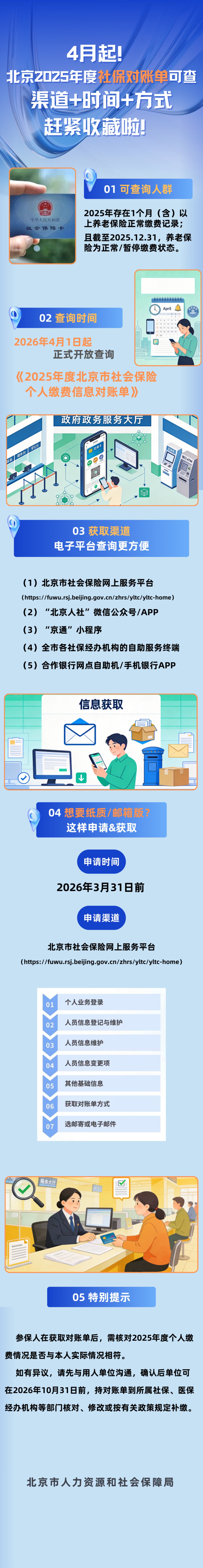4月起可查询北京2025年度社保对账单了。谁能查、怎么查、查什么?一图读懂!